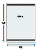 EN = 120 mm BOY = 340 mm DERİNLİK = 180 mm (MAX)